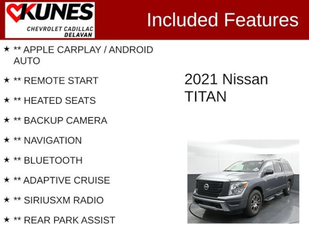 While we make every effort to ensure the data listed here is correct, there may be instances where some of the factory rebates, incentives, options or vehicle features may be listed incorrectly as we get data from multiple data sources. PLEASE MAKE SURE to confirm the details of this vehicle with the dealer to ensure its accuracy. Dealer cannot be held liable for data that is listed incorrectly. * MSRP is the Manufacturer's Suggested Retail Price (MSRP) of the vehicle. It does not include any tax, title, license or documentary service fee. Consult the dealer for fee, payments and complete details. * Offers, incentives, discounts, or financing are subject to expiration and other restrictions. See dealer for qualifications and complete details. * In transit means that vehicles have been built but have not yet arrived at our dealership; images shown may not necessarily represent exact vehicles in transit to your dealership. See your dealer for complete details. Consumers, please be aware that the above advertised price assumes you are purchasing the vehicle from the Kunes Auto Group dealership where it is listed as being offered for sale. If the vehicle is transferred from one location to another, a transfer fee for this transportation of $300 will be added to the purchase transaction. If you would like to purchase such vehicle without paying a transfer fee, you can take delivery of the vehicle at the store it is listed as being sold from and avoid the additional transfer fee. Shipping fees vary depending on location, contact dealer for shipping details and costs. The vehicle listings on this website may not reflect correct vehicle items or accessories as we get data from multiple sources. Always verify or physically inspect the vehicle to make sure the equipment and accessories listed are included.